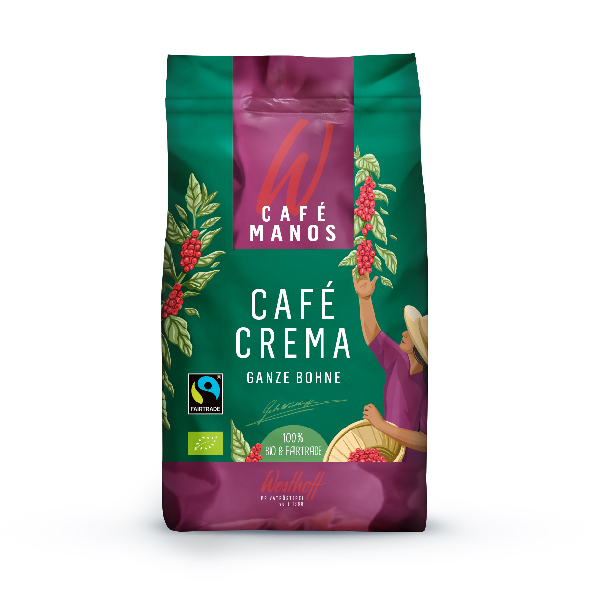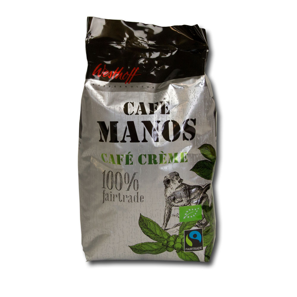 Westhoff Manos Café Crème Fairtrade ist ein Genusserlebnis mit besonders feinporiger Crema. Sein eleganter Körper und sein aromatischer Charakter begeistern Kenner wie auch Genießer. Ein besonderes Kaffeeerlebnis, das auch Sie überzeugen wird.