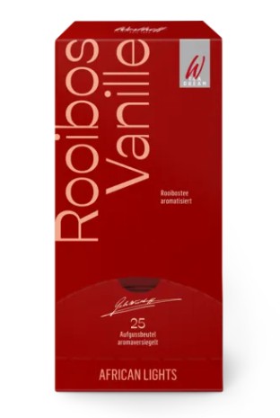 Das typisch süßliche Aroma des Rooibostees, raffiniert mit verführerischem Vanillearoma angereichert, belebt Körper und Geist.